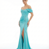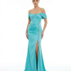 Die sanfte Drapierung an der Taille schmeichelt der Figur, während der hohe Beinschlitz dem Look eine elegante und zugleich sinnliche Note verleiht. Der fließende Stoff rundet das Design harmonisch ab und macht das Kleid zu einer stilvollen Wahl für festliche Abende, Galas und besondere Anlässe.
